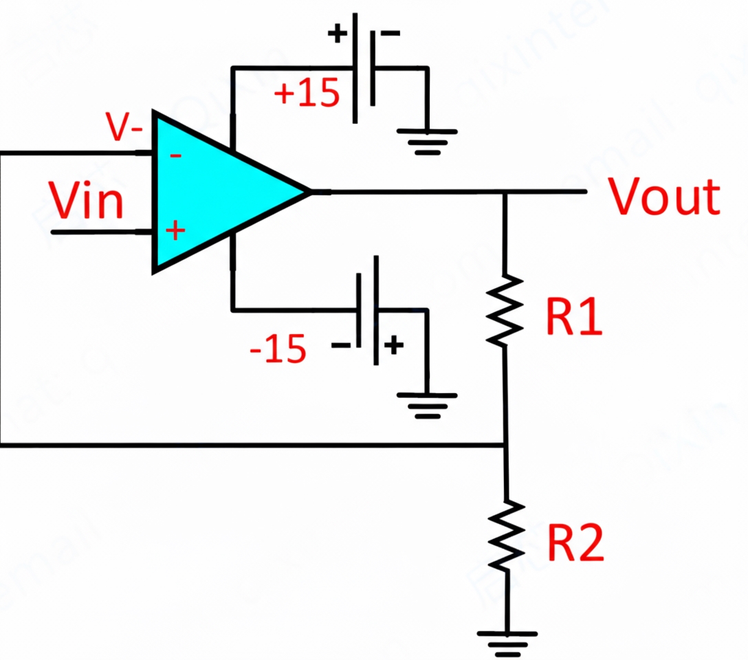 (V1 - V+)/R1 = (V+ - V2)/R2