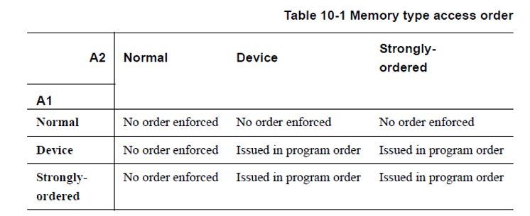 ARM memory ordering defines different memory types with different support for unaligned accesses. Only Normal memory supports unaligned accesses. Strongly-ordered and Device memory do not support unaligned accesses. The memory type rules are summarized in the following diagram.